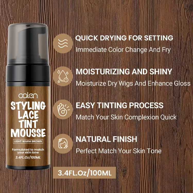 Lace Mousse is foaming type tint for your wig. This lightweight foam is highly pigmented, providing a natural-looking tint to your frontals, closures, and wigs, perfectly blending your lace with your skin tone and at the same time a hair mousse to style your baby hairs.